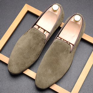 尖頭反絨皮翻毛男鞋 磨砂皮鞋 男一腳蹬套腳商務(wù)休閑皮鞋 韓版 樂福鞋由