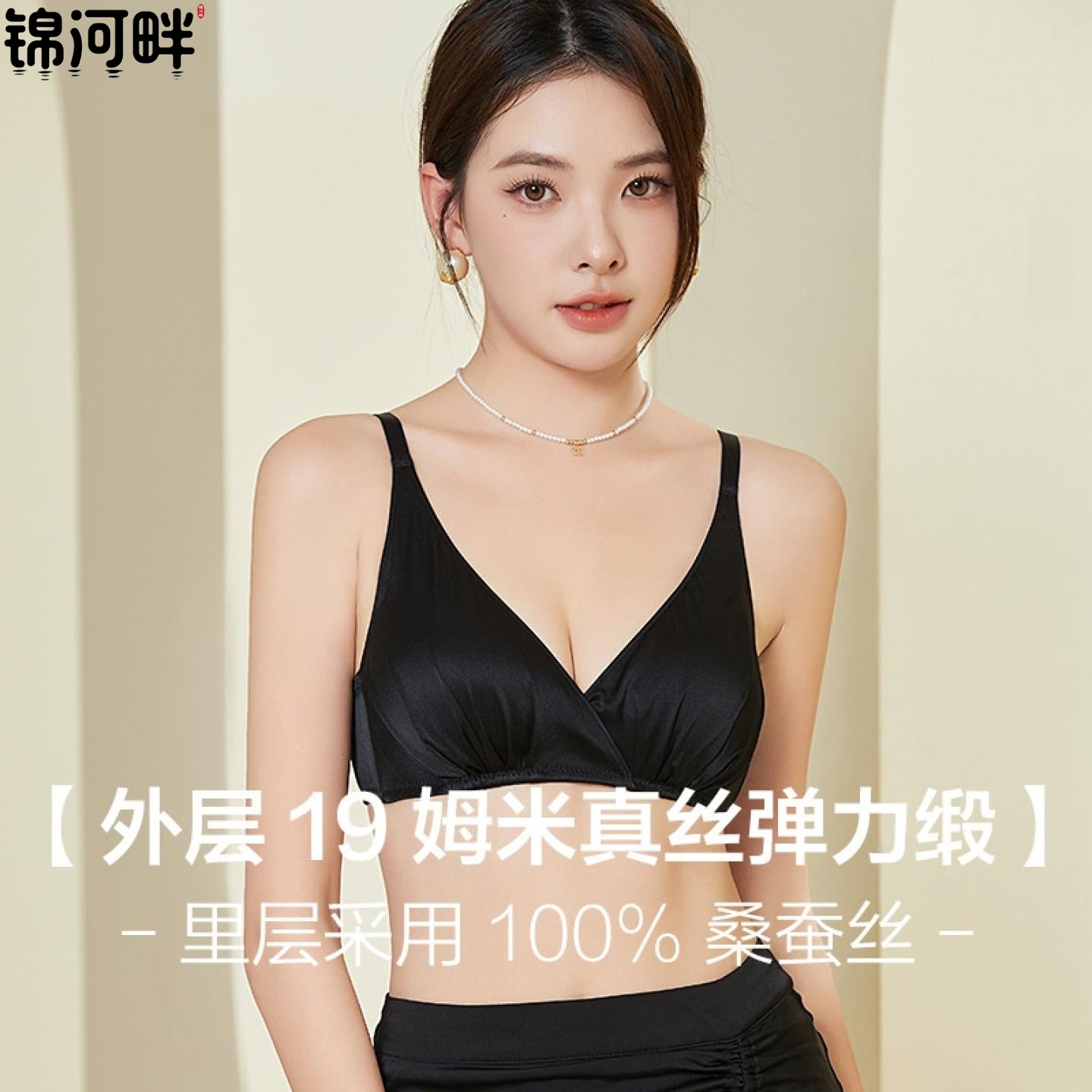 錦河畔 無鋼圈光面真絲緞面19姆米內(nèi)衣 春夏雙面桑蠶絲聚攏文胸由