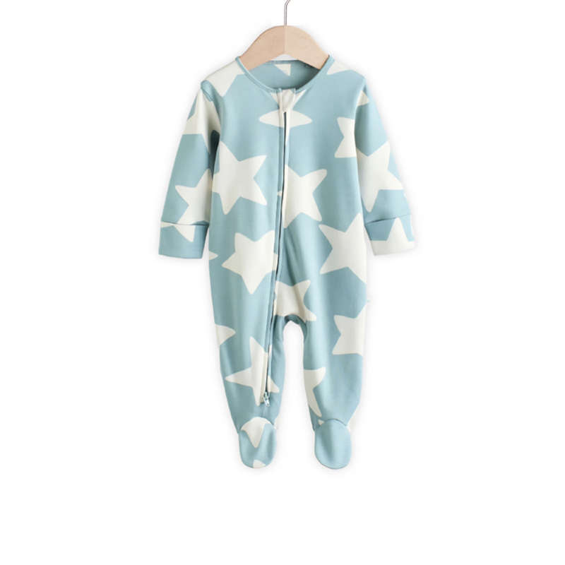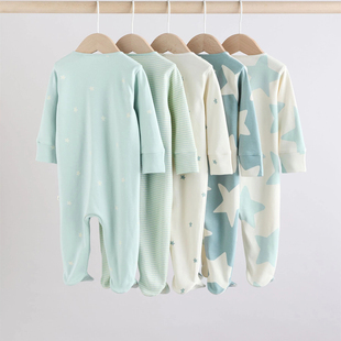 英國NEXT進(jìn)口嬰幼新生兒純棉打底睡衣星星哈衣男寶包腳拉鏈連體衣由