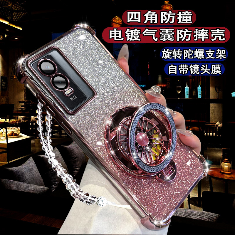 硅膠y76s四角防摔軟殼女 適用vivoy76s網(wǎng)紅手機(jī)殼閃粉陀螺支架V2156A氣囊硅膠保護(hù)套viv0Y74S網(wǎng)紅磁吸voiv時(shí)尚由