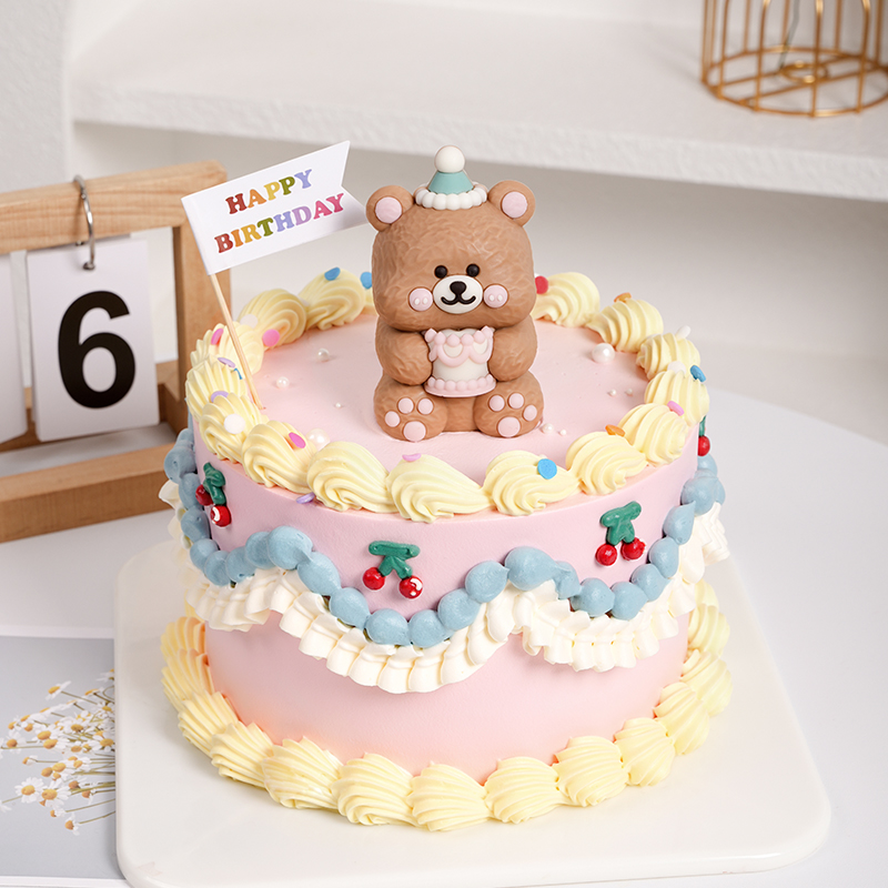 飾擺件黃油小狗網紅卡通烘焙甜品生日插件可食用 小熊巧克力蛋糕裝由