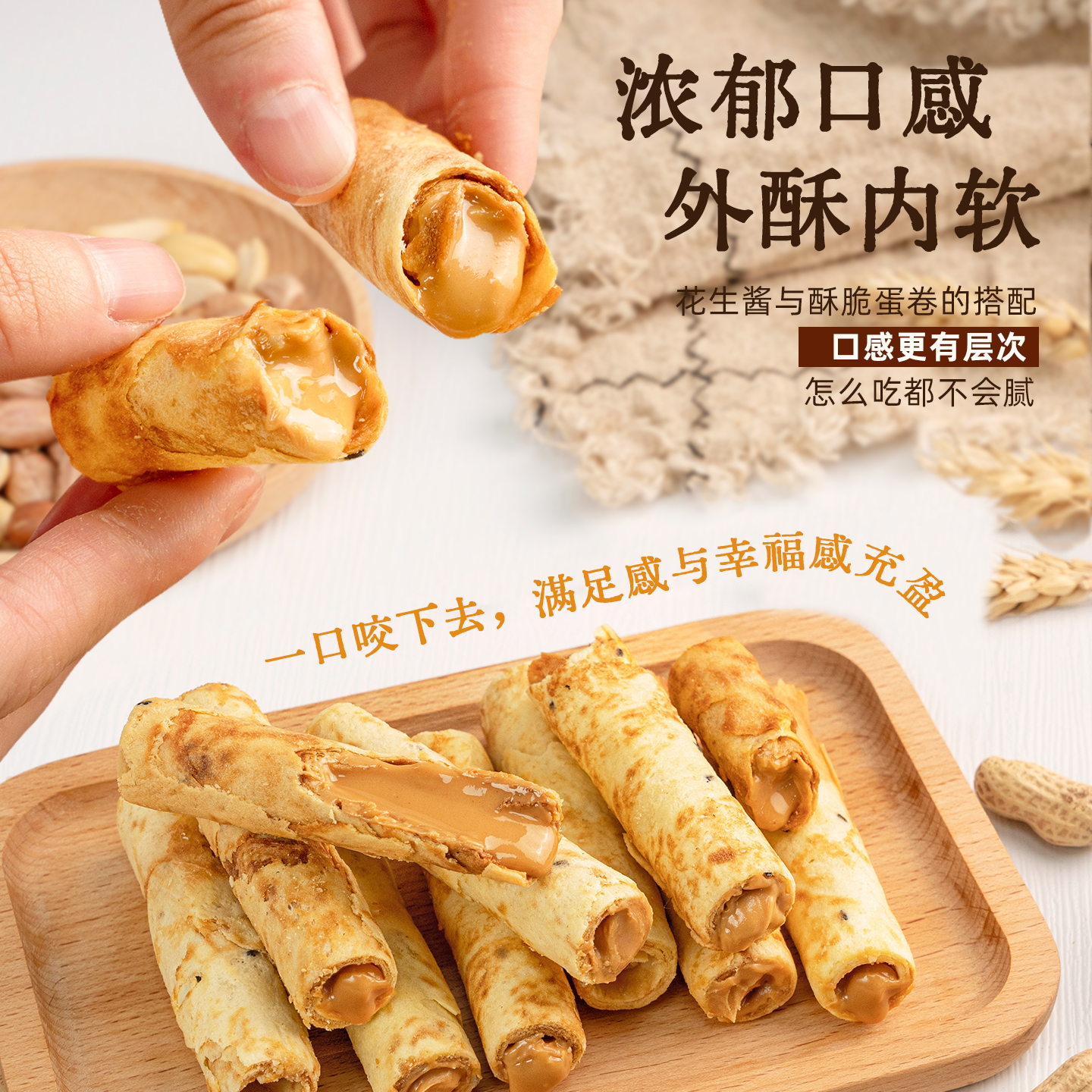 海鹽花生夾心蛋卷 注心餅干休閑小零食 榛果巧克力蛋卷 本宮餓了由