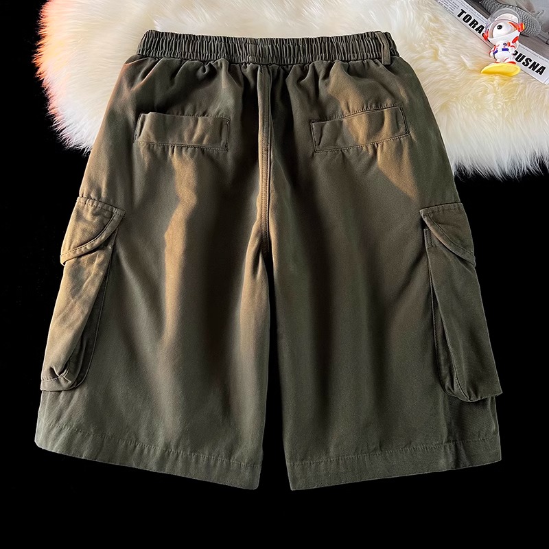 闊腿直筒古著褲 軍綠色工裝 子 日系cityboy純棉休閑褲 夏季 短褲 男士由