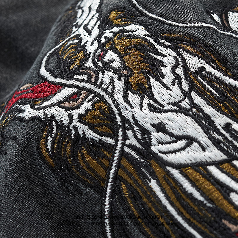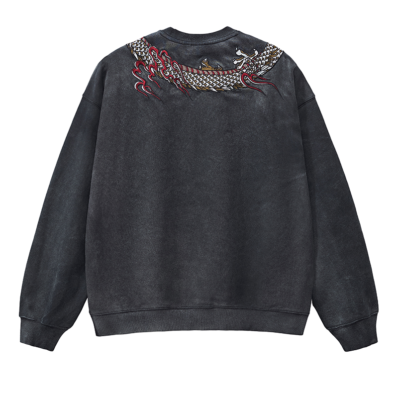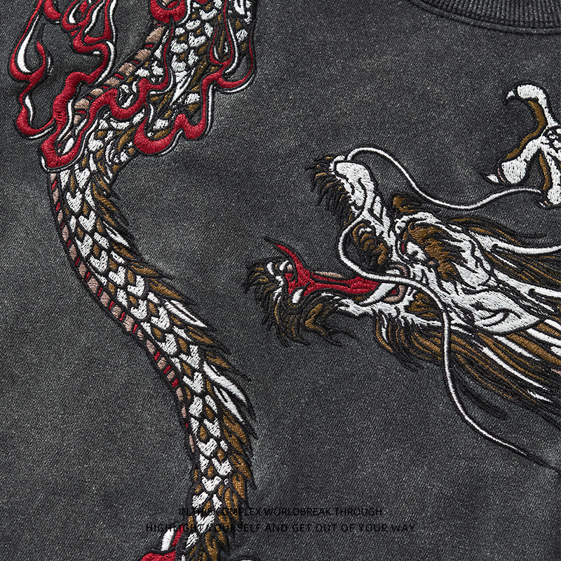 水洗做舊國潮中國風復古重磅純棉龍刺繡圓領衛衣男女橫須賀 25新款由