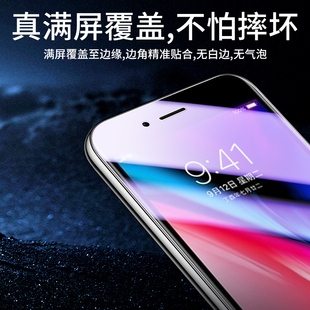 抗藍光保護防指紋高清iphone8plus手機膜全包邊護眼無白邊屏保ipone8剛化膜玻璃全屏覆蓋 適用蘋果8鋼化膜新款由