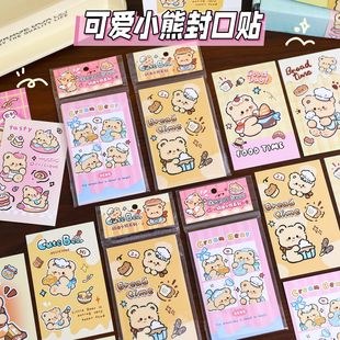 飾粘貼畫 奶油小熊封口貼可愛手帳貼紙創意小熊打包出卡小卡打包裝由