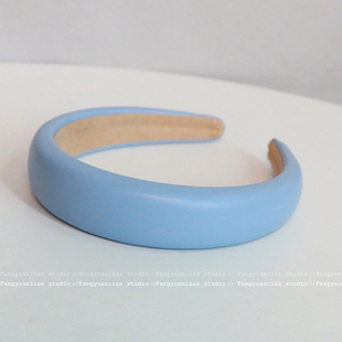 高顱頂頭箍洋氣時尚 頭飾 溫柔風藍色皮質發箍女2025新款 小閑既歡由