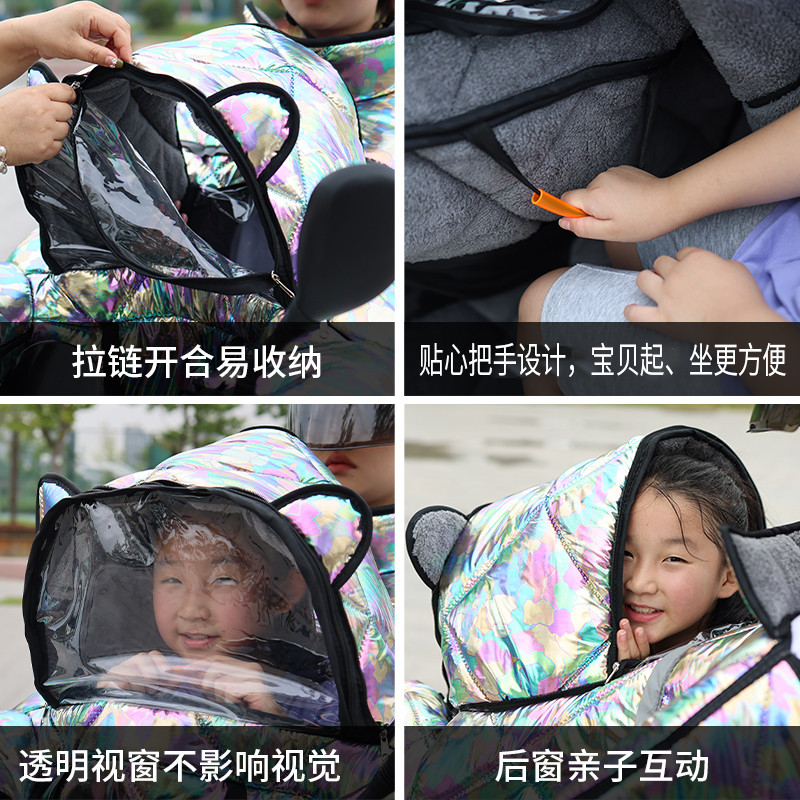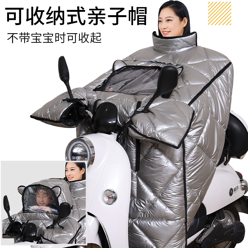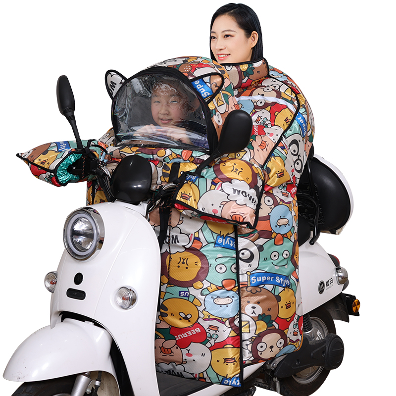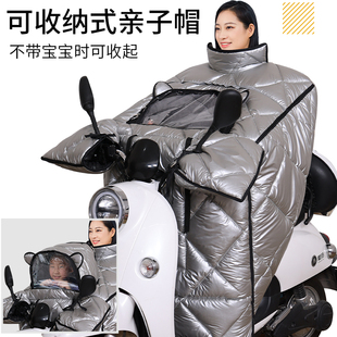 加絨加厚電瓶摩防水防風罩四季 通用 電動車擋風被帶小孩冬季 親子款
