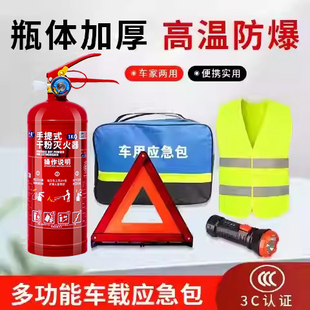 25年新款 車載滅火器私家車3C小型汽車專用車用三件套小車年檢套裝由