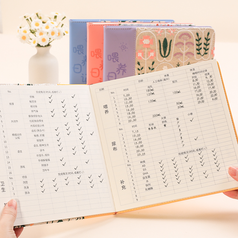 喂養(yǎng)日記本寶寶喂奶記錄本新生兒嬰兒奶粉母乳母嬰日常每日作息護理表格生活成長日志手冊皮面方形筆記本本子由