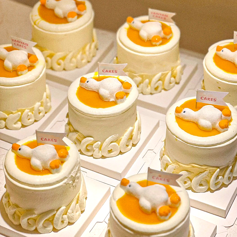 飾卡通動物軟糖果慕斯甜品烘焙擺件 熊貓棉花糖小黃鴨躺平鴨蛋糕裝由