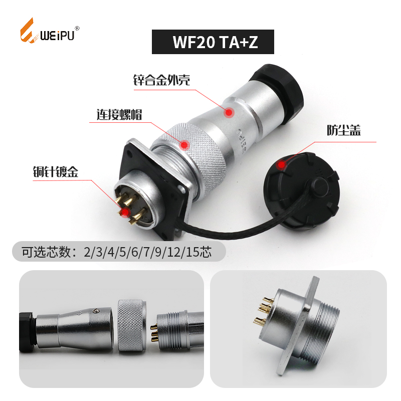 威浦航空插頭插座WF20 12芯直式 防水螺母壓緊TA由