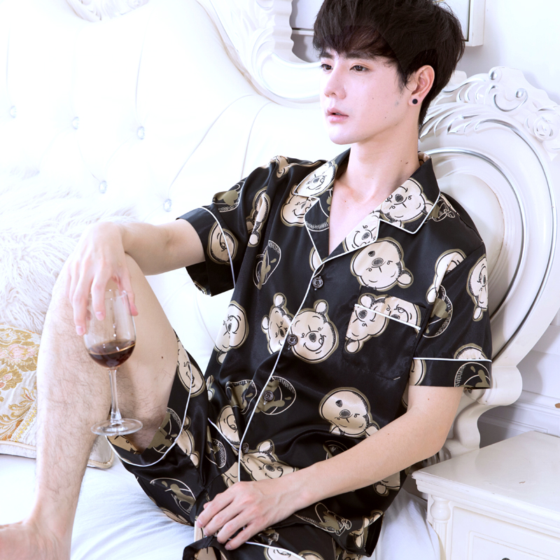 套裝 短袖 睡衣男夏季 家居服男士 2025年新款 冰絲春秋款 絲綢薄款 大碼由