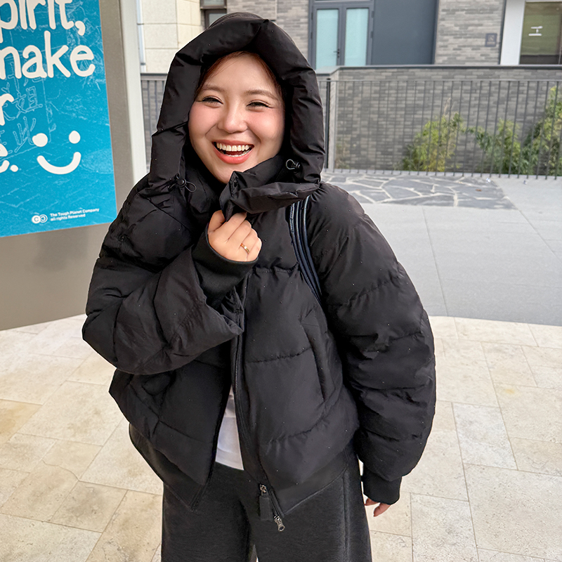 厚棉服木子理想大碼 女燙鉆插肩外套200斤 假兩件拼接短款 胖mm冬季由
