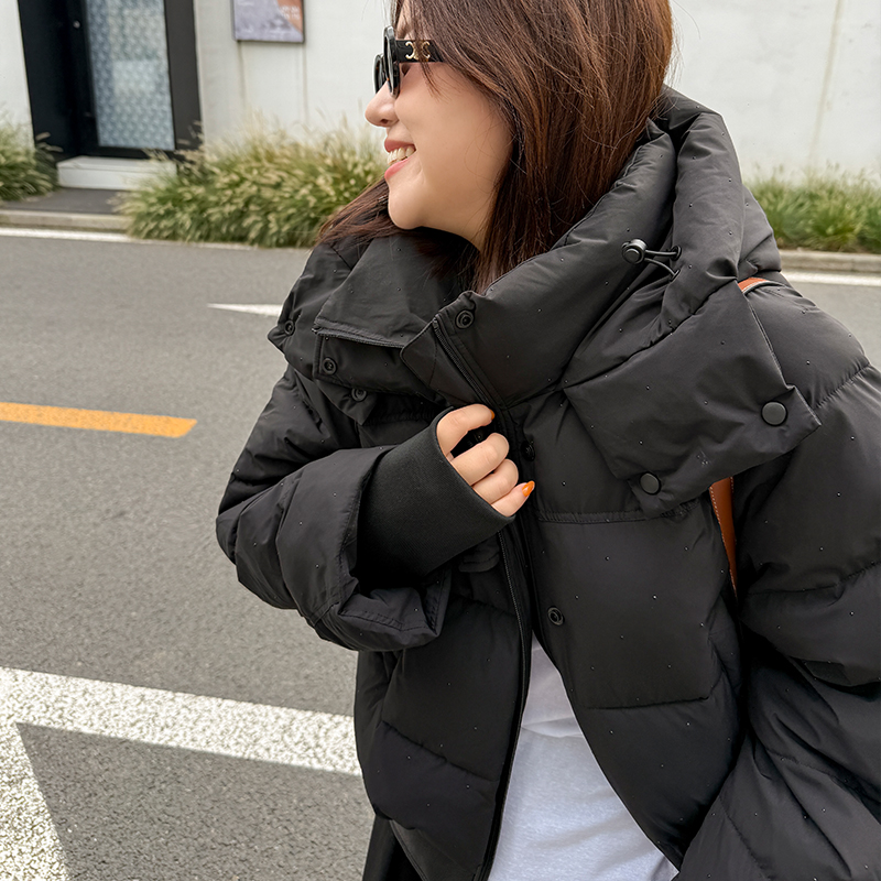 胖mm早冬龜背廓形絎縫棉服木子理想大碼 舒適無領棉外套200斤 女裝
