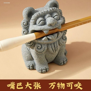 飾創(chuàng)意盆栽魚缸造景禮物女生男生鎮(zhèn)紙筆插 石獅子一對小擺件桌面裝由