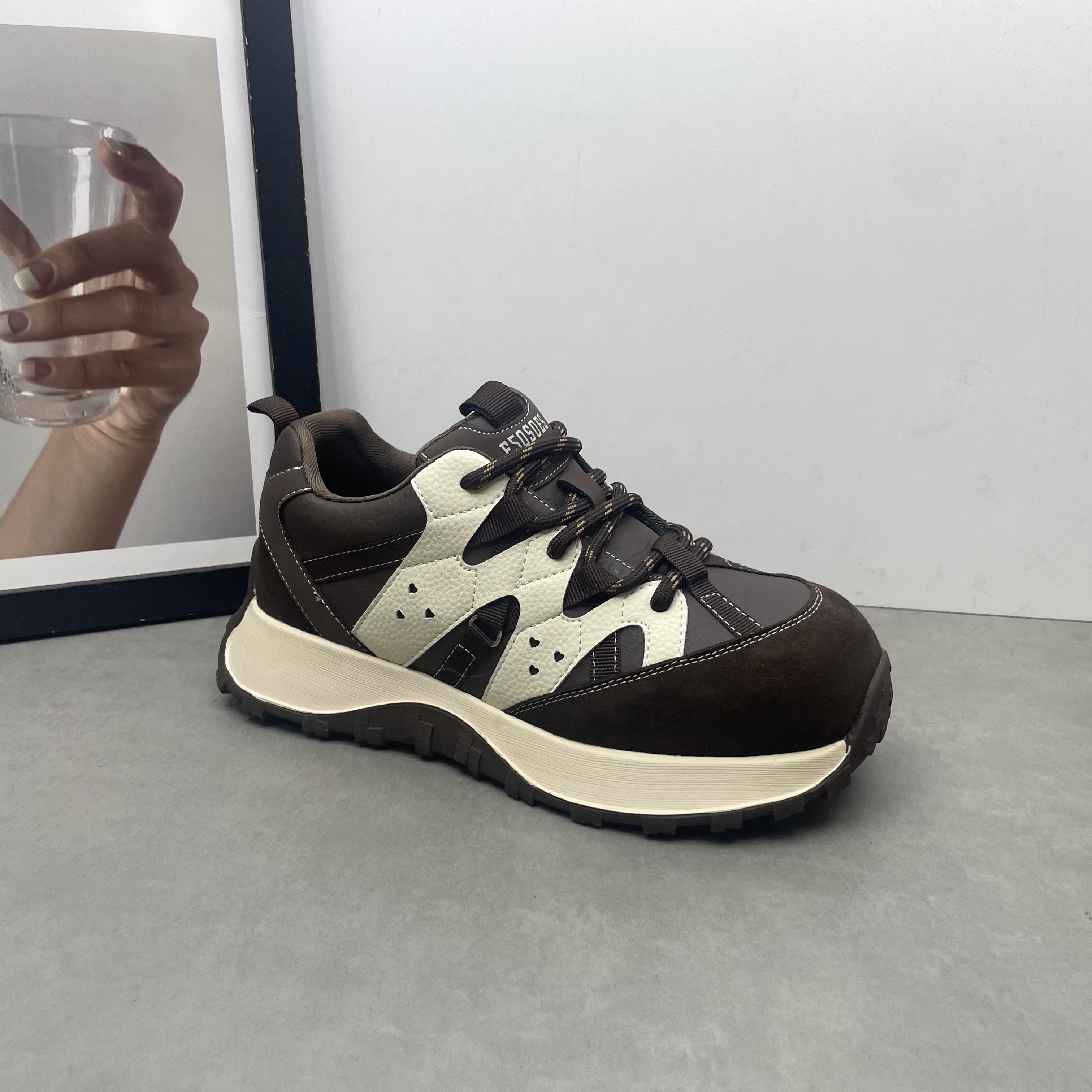 2025秋冬新款 圓頭系帶輕便舒適防滑復古老爹鞋 女士單鞋 真皮阿甘鞋由
