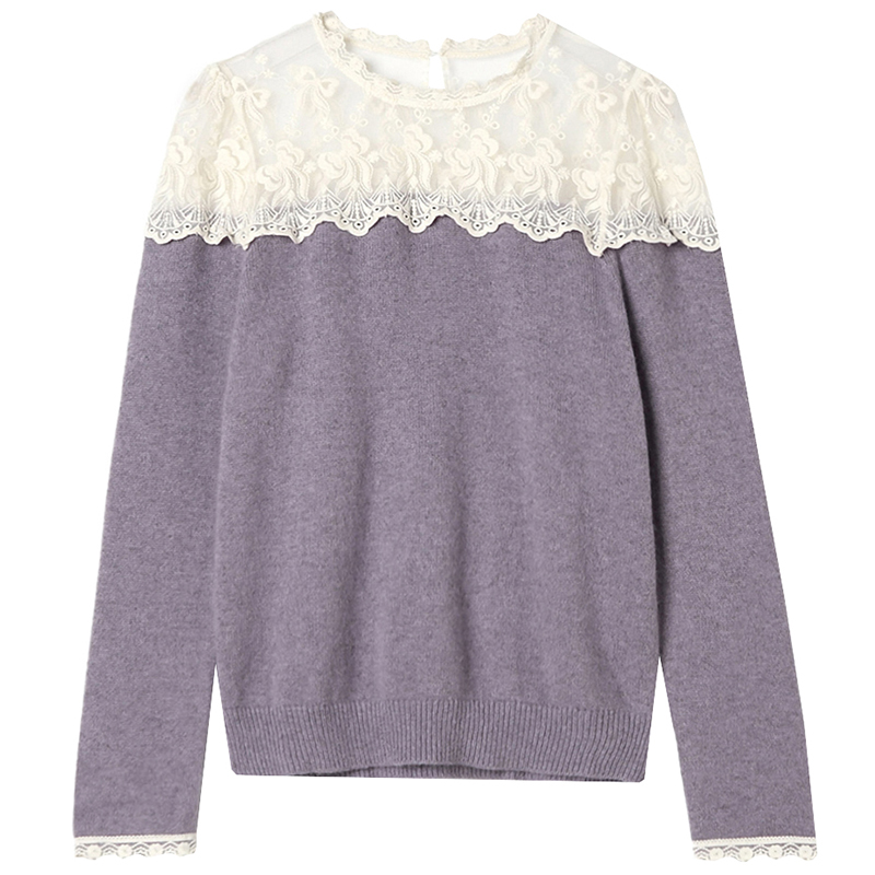 2025年冬裝 MO系列蕾絲拼接套頭上衣一粒扣微彈毛衣女 Outlets專柜由