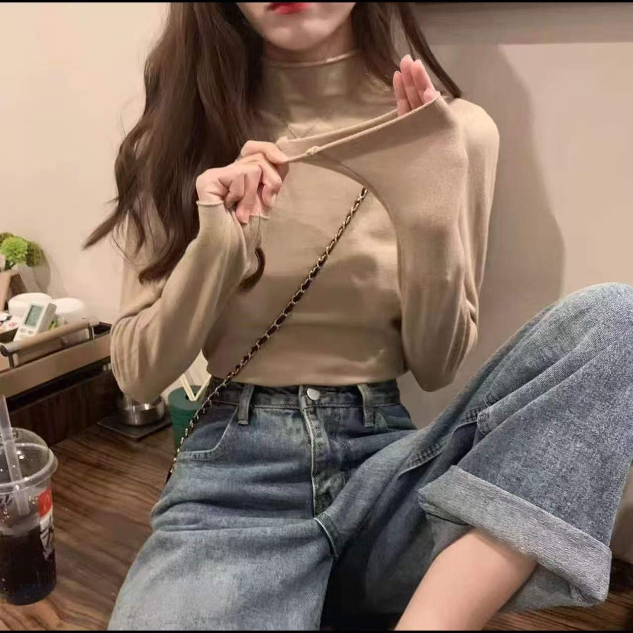 新款 百搭卷卷邊針織打底衫 x167 卷卷邊由