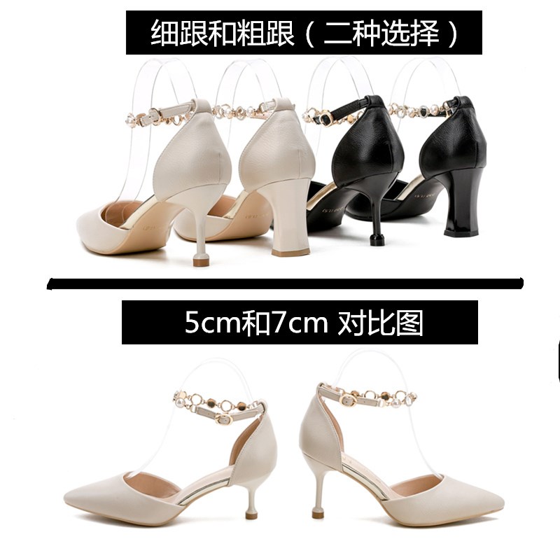 女夏配裙子細跟高跟仙女中空單鞋 2025新 一字扣d尖頭包頭涼鞋 夏季由