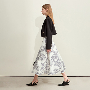 Amii2025秋新優(yōu)雅浪漫國風(fēng)素描植物印花裙半身裙女A字裙中長裙子由