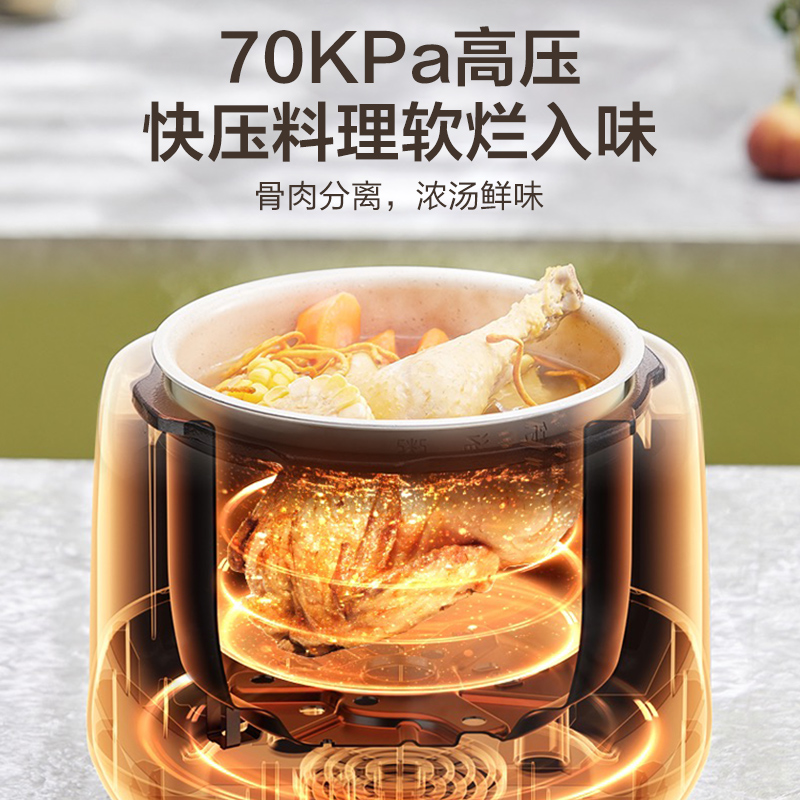蘇泊爾0涂層深湯電壓力鍋雙膽智能預(yù)約多功能5L大容量高壓飯煲