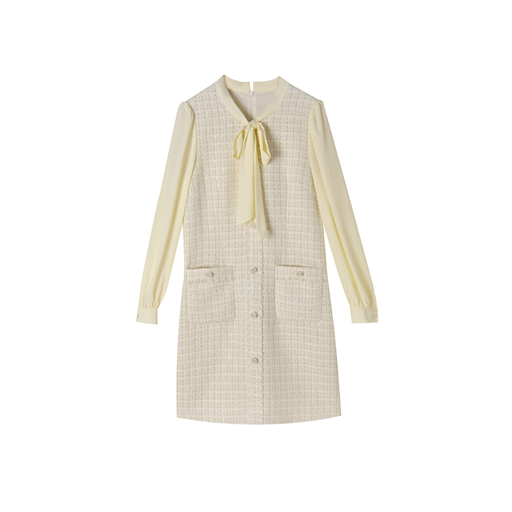 通勤z11studios收腰連衣裙A字飄帶領氣質裙子米白色新品 女中長款由