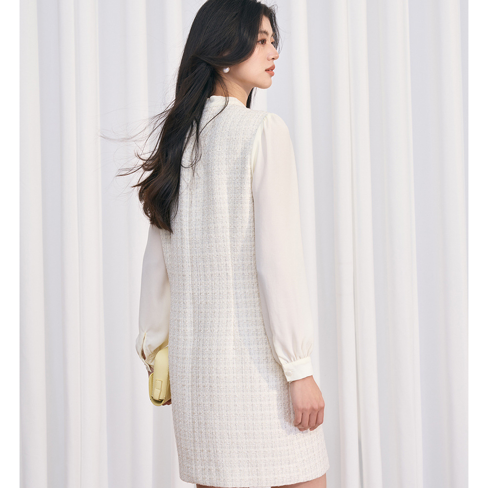 香香軟軟 氣質包肩收腰顯瘦半高領白色針織連衣裙 COLLECTION NSS