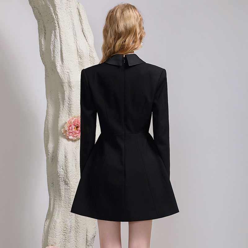 茬客優(yōu)雅氣質(zhì)黑色西裝 釘珠蝴蝶收腰顯瘦高腰日常通勤連衣裙 裙秋季由