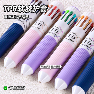 58色繪畫專用多色圓珠筆軟握按壓彩色多功能十色合一書寫手賬0.8mm可疊色高顏值標記學生摸魚中性筆 藍果新款由