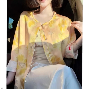 雙面穿新中式 荷塘月色 防曬外套顯白上衣氣質盤扣女工作室原創由