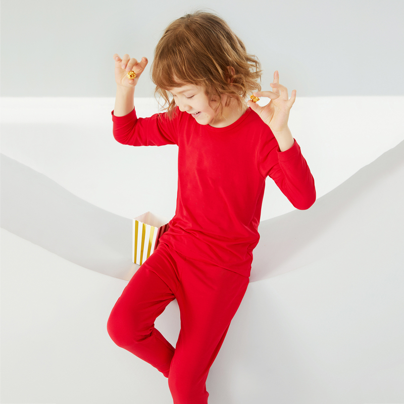 愛慕兒童男女孩新年本命年保暖內衣套裝 打底莫代爾 紅色秋衣秋褲由