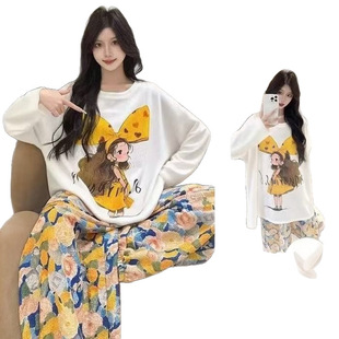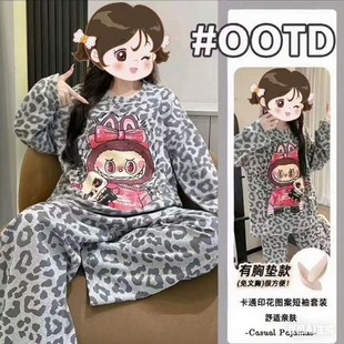 睡衣女長袖 云朵棉卡通labubu寬松家居服 帶胸墊春秋季 直播爆款由