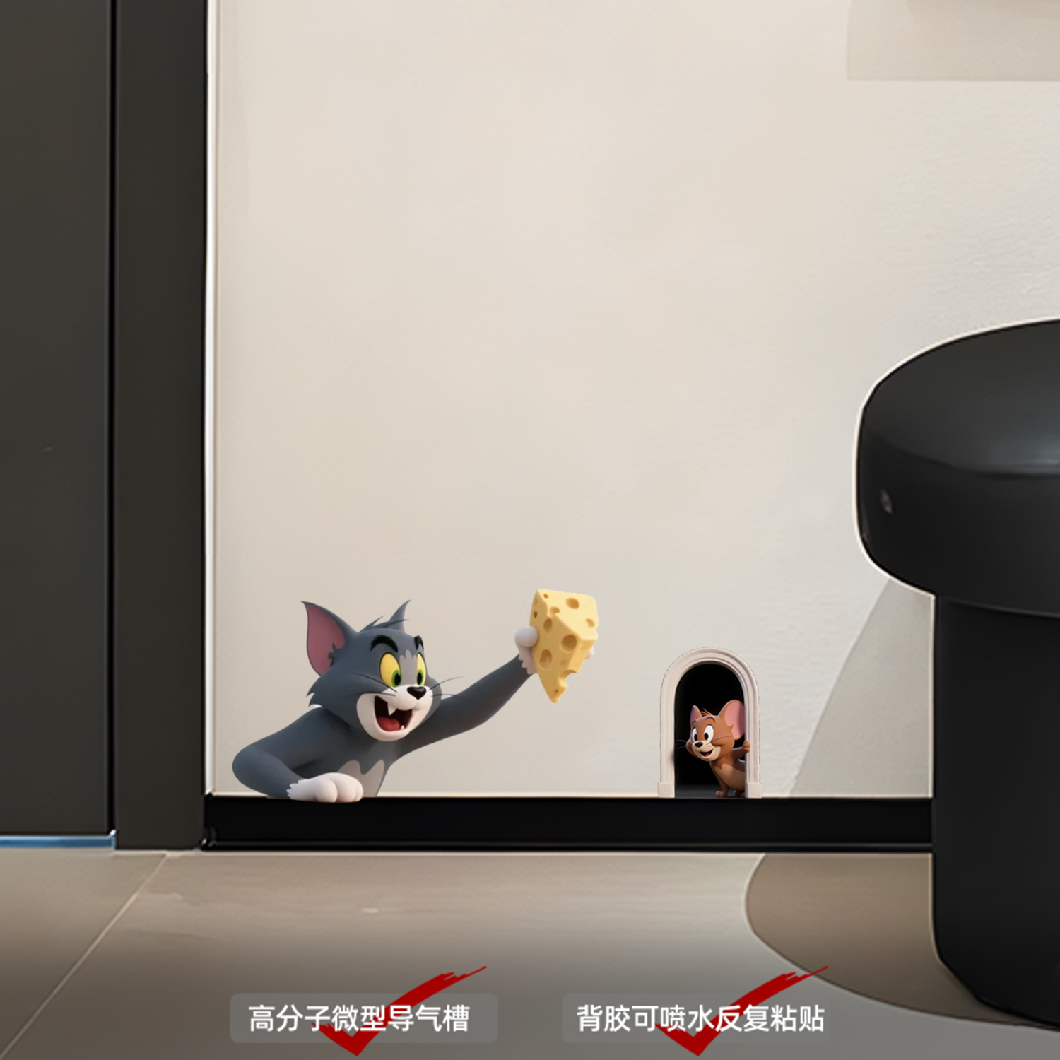 飾貼紙 適用于卡通可愛創(chuàng)意3D立體貓和老鼠湯姆杰瑞墻面踢腳線裝由