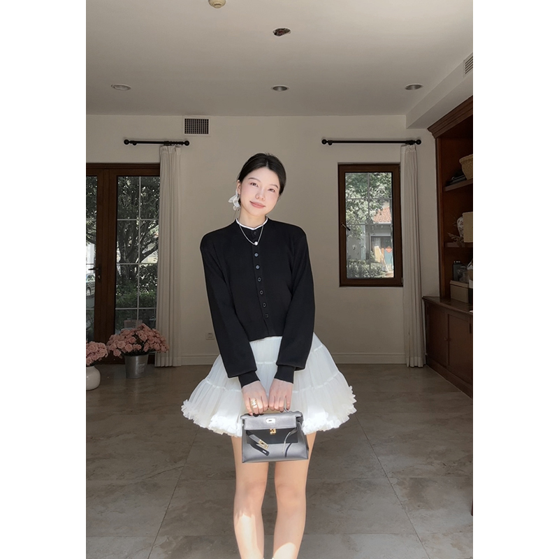 羊毛氣質寬松顯瘦針織毛衣早秋百搭上衣蓬蓬公主裙短裙 郭九九呢由