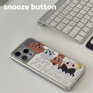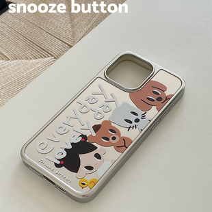 snooze 一天」電鍍銀色邊框鏡面iPhone16Promax手機殼小眾原創設計蘋果15pm全包14Pro防摔13 button「美好由