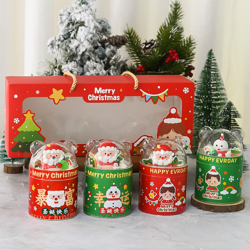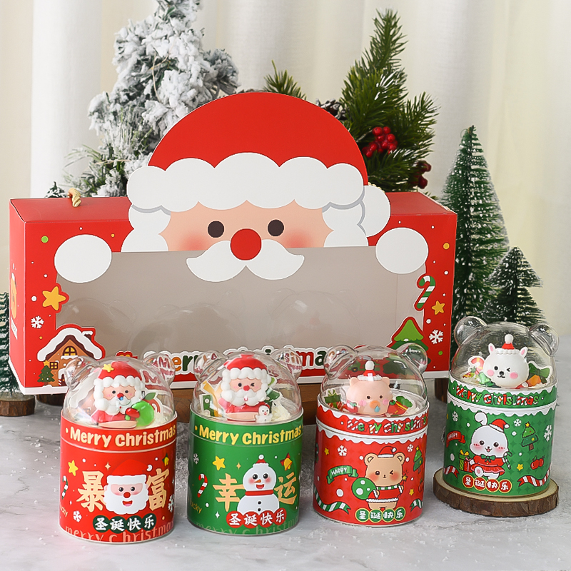可愛小熊頭瓶子蛋糕裝 圣誕老人擺件圣誕節(jié)透明杯手提盒套餐 飾套裝由