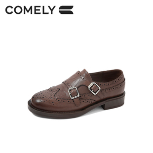 單鞋 康莉英倫風系帶小皮鞋 布洛克鞋 真皮復古黑色樂福鞋 秋季 新款由