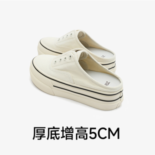 2025年新款 女款 厚底半拖帆布鞋 白色薄款 免系帶一腳蹬拖鞋 秋季 UBZ由