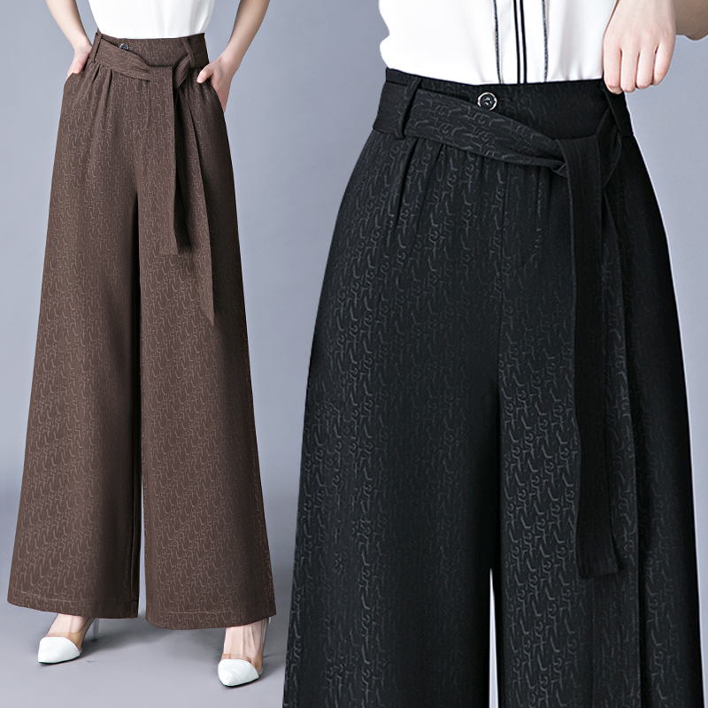 闊腿褲 2025新款 女 腰帶時尚 大碼 牛奶絲純色秋季 百搭抗皺寬松直筒褲由