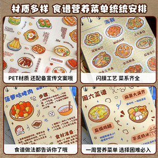 飾小圖案pet模切可愛創意菜品飲料外賣貼紙女孩兒童手賬咕卡貼畫本66張 提拉多菜譜素材本手帳貼紙ins彩色裝由