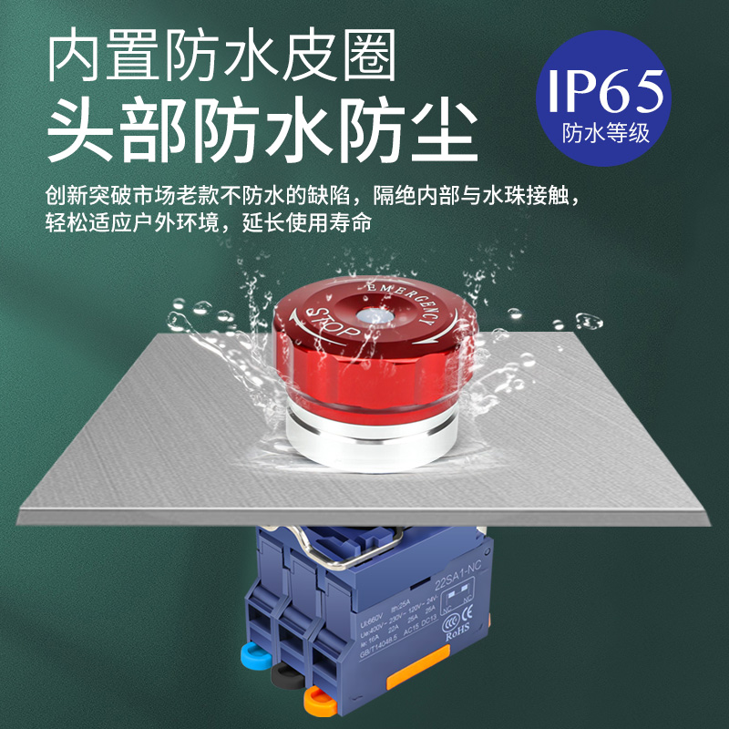 25A大電流金屬頭急停開關工控電源緊急停止按鈕帶燈STOP端子接線由