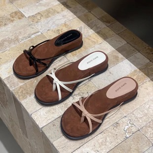 細細條 復古一字拖鞋 女戶外穿百搭休閑平底鞋 防滑軟底涼拖夏 時尚