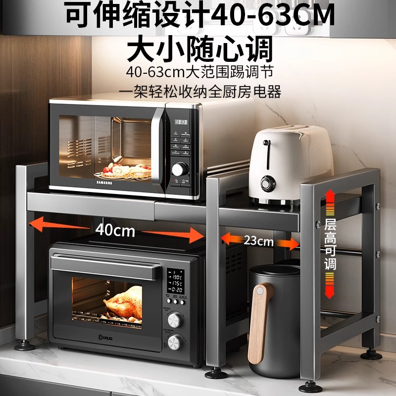廚房微波爐置物架臺(tái)面雙層多功能家用放烤箱架子電飯鍋一體收納柜由