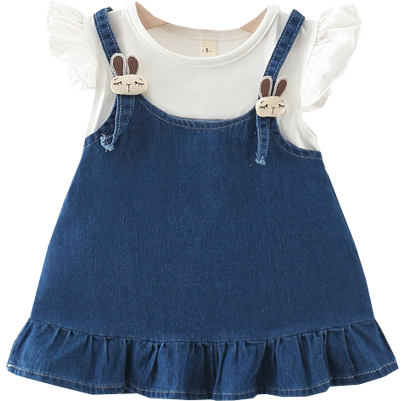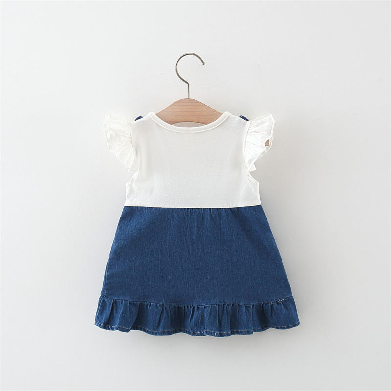 女童夏季 連衣裙2025新款 嬰兒小寶寶夏裝 女孩公主裙 牛仔假兩件短袖由