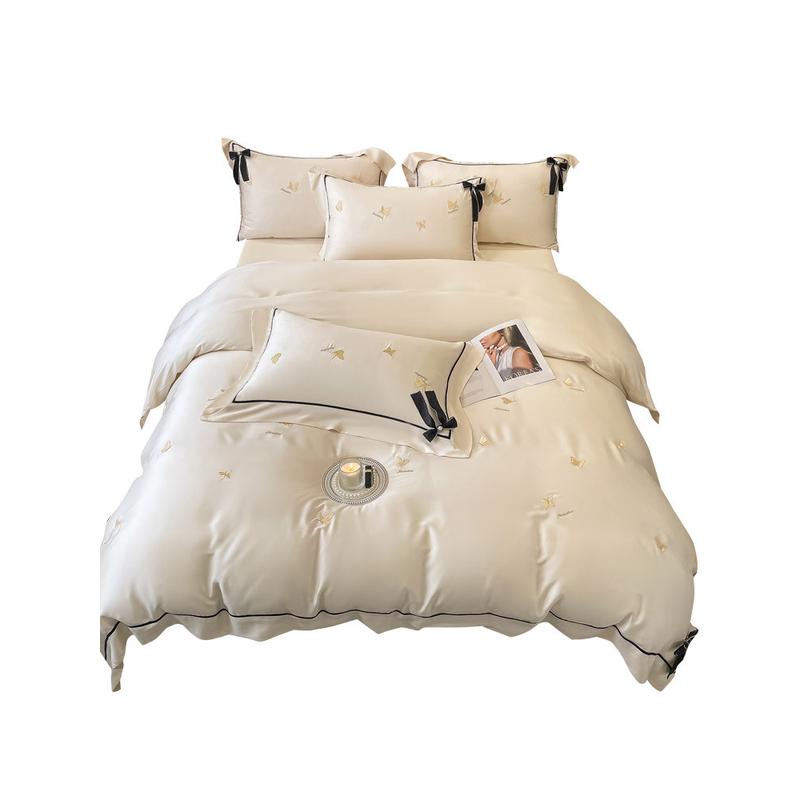 少女心涼精80支蘭感天絲四件套刺繡蝴蝶結(jié)絲滑被套床上 熱銷春夏季由