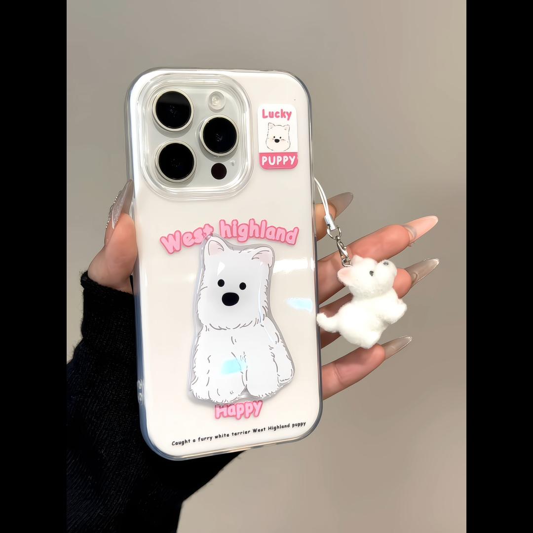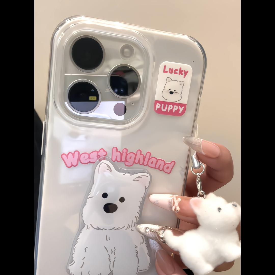 西高地貼片適用蘋果16pro手機殼iPhone15promax新款 p70華為mate60榮耀200卡通vivoppo小米14紅米13掛墜12由