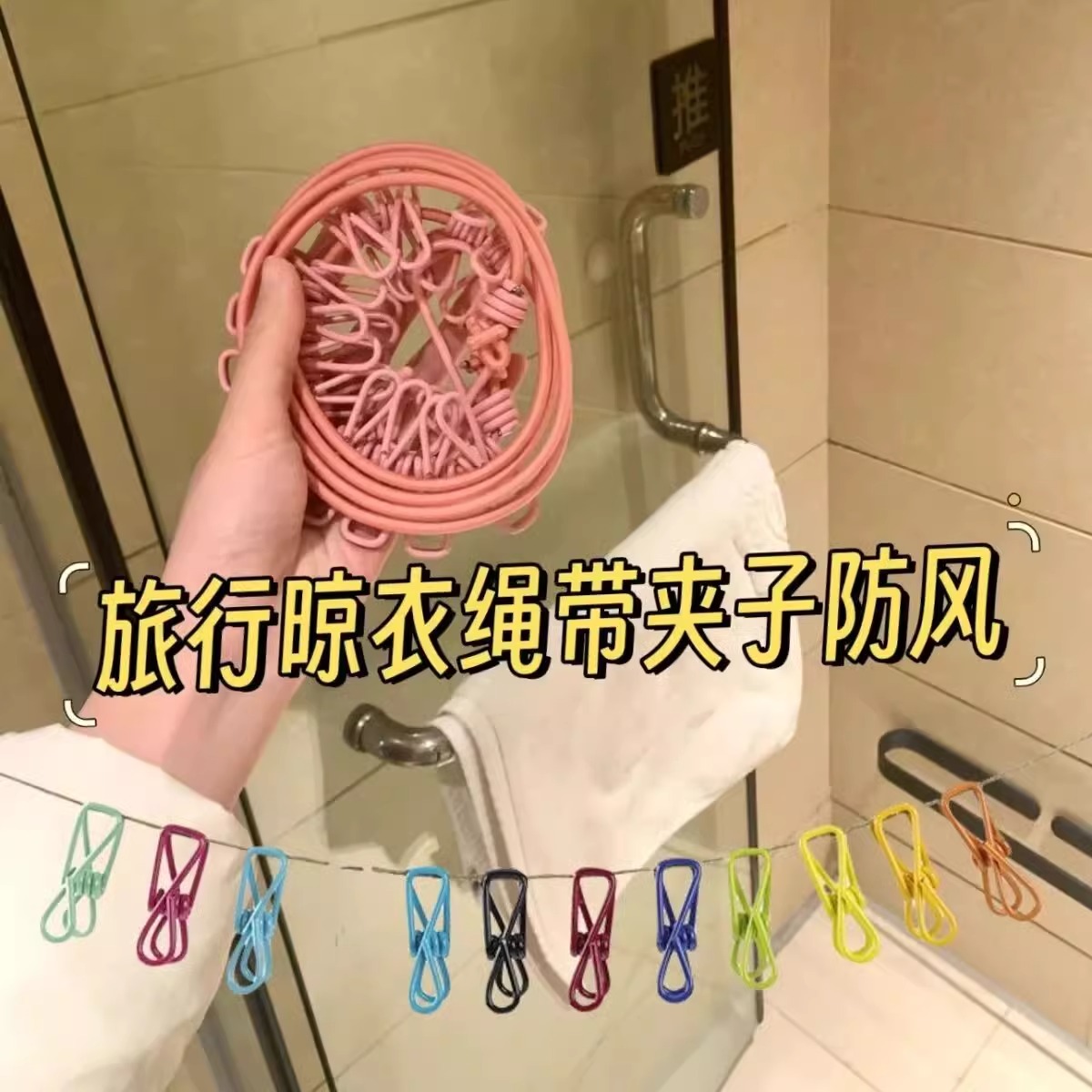 旅行便攜晾衣繩酒店晾衣服神器旅游出差掛衣繩彈力帶夾子便攜衣架