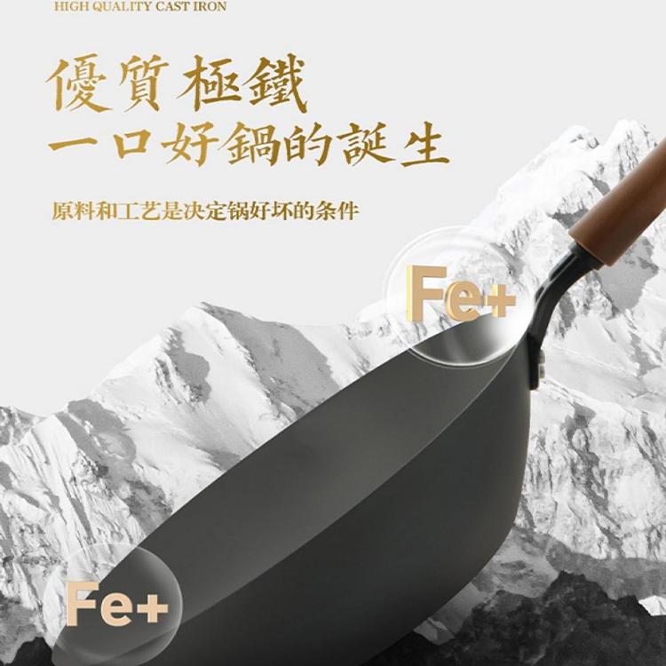 三四鋼?精鐵炒鍋家用無涂層熟鐵圓底炒菜鍋免開鍋 新國標鐵鍋