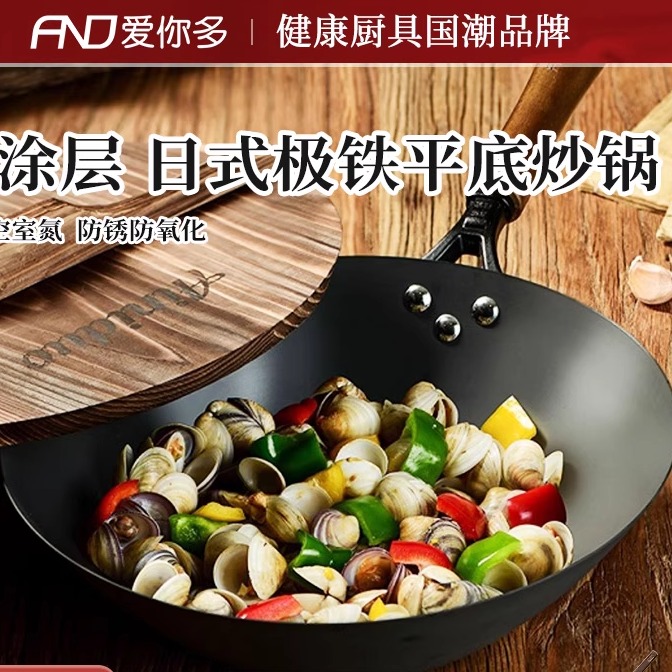 愛你多炒鍋日式 鐵鍋無涂層不粘燃氣電磁爐通用 極鐵家用傳統老式由